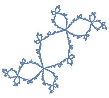 The airplane, the corabbit, and the rabbit (or Douady's rabbit) are quadratic polynomials f(z) = z2 + c, where c is a zero of the cubic polynomial c3 + 2c2 + c + 1. For the airplane c≈ -1.75488, for the corabbit c ≈ - 0.122561 - 0.744862 i, and for the rabbit c ≈ - 0.122561 + 0.744862 i.The Julia set for the corabbit is shown in the figure below, which was created from Mathematica.