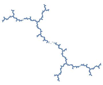 f1/4 is the quadratic ploynomical f(z) = z2 + c, where c≈ -0.228155 + 1.11514 i is a zero of the cubic polynomial c3 + 2c2 + 2c + 2.The notation f1/4 comes from external rays. In the complement of the filled Julia sets, the external ray with angle 1/4 (mod 1) lands at the critical value c. From this it follows that f(c) has angle 1/2 = 2 x 1/4, and f2(c) has angle 1 = 2 x 1/2. Since 2 x 1 ≡ 1 (mod 1), f2(c) is fixed and f has four postcritical points (∞, c, f(c), and f2(c). The Julia set for f1/4 is shown in the figure below, which was created from Mathematica.